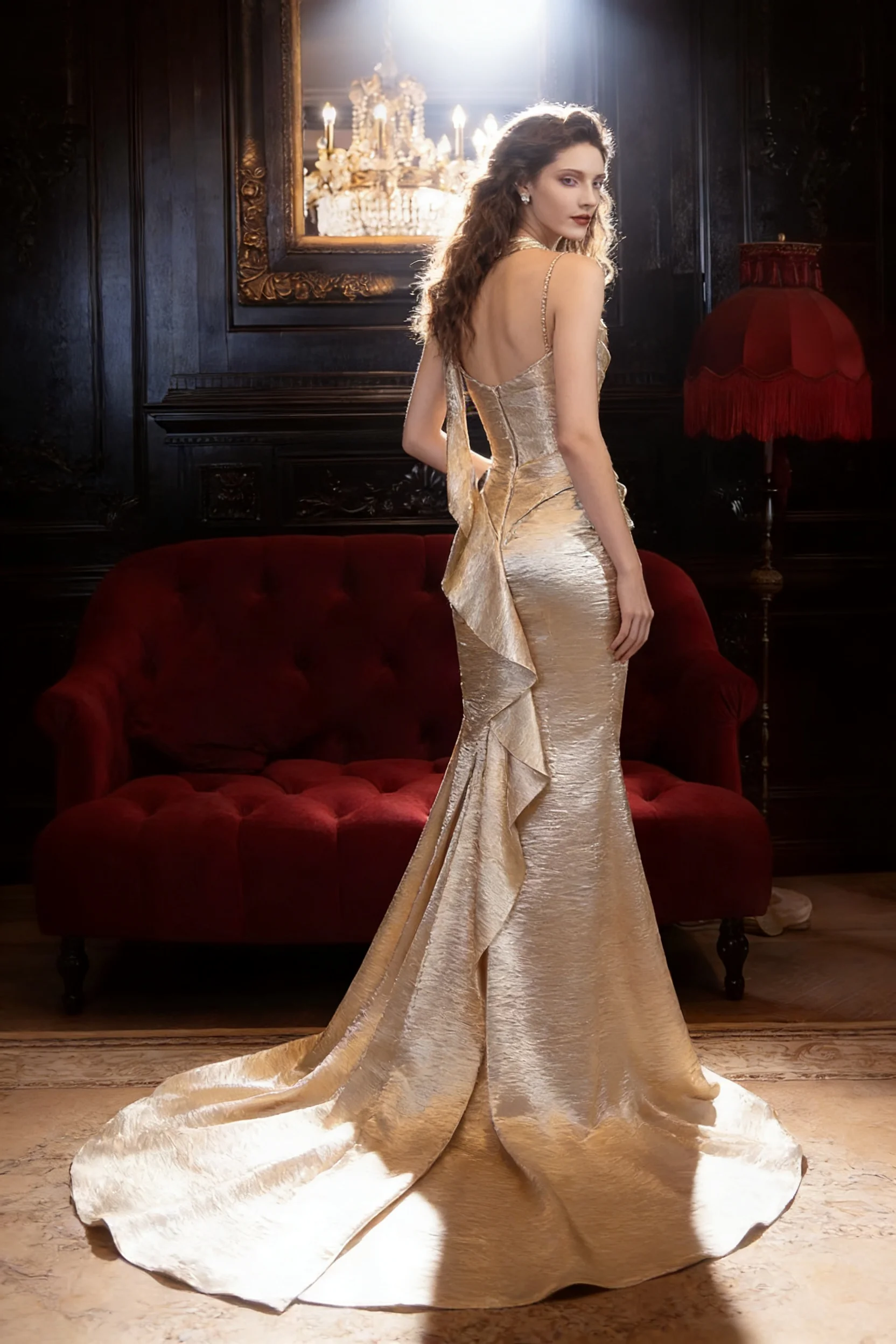 Be the first to review “Champagne Satin Cowl Neck Mermaid Evening Dress”
