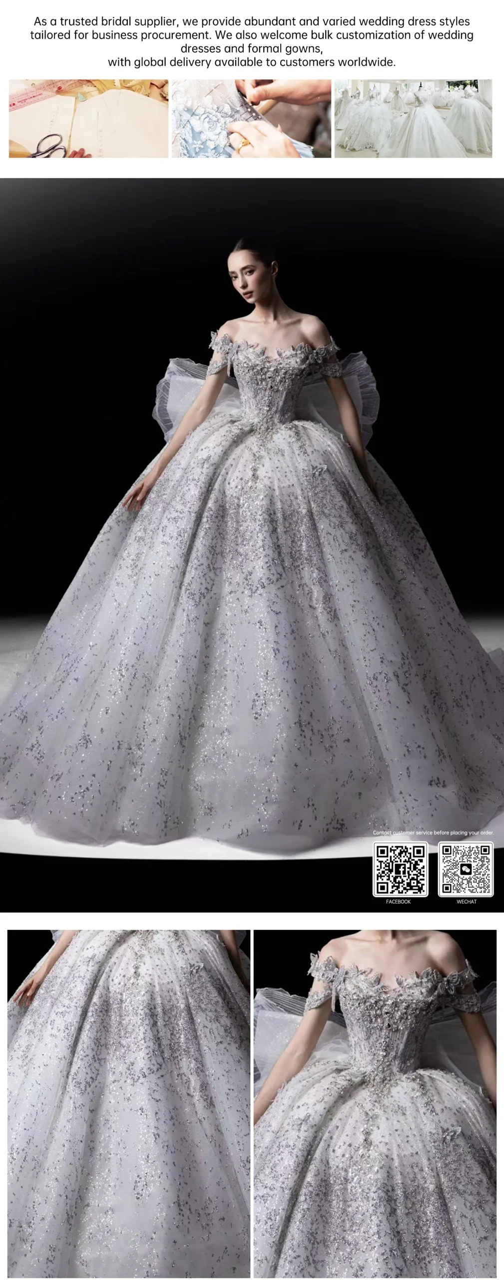 Shimmering tulle, an illusion neckline, and a showstopping oversized bow at the open back—plus a dramatic train for that red-carpet vibe. Perfect for your wedding day or any black-tie moment that calls for max glamour.